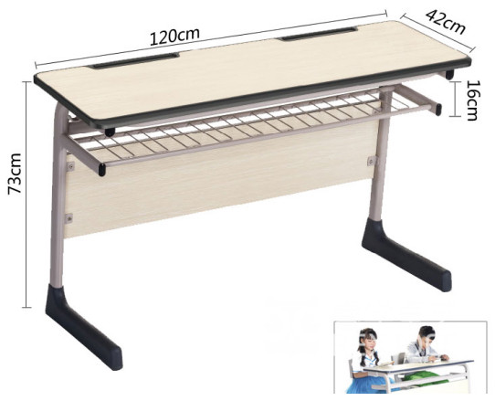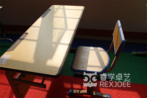 桌腳配有防護套,防止噪音,避免刮傷地板,桌面有效的調節(jié)傾斜,有利于背部和腰部的姿勢,減少脖子和眼睛的疲勞。桌面帶有儲存功能,便于學生使用。